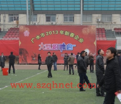 2013年2月17號(hào),由廣水市人力資源服務(wù)中心、廣水市人才網(wǎng)組織的隨州市2013年新春企業(yè)大型招聘會(huì)在廣水市東岳體育廣場(chǎng)盛大舉行,本次大型招聘會(huì)將接連三天舉辦。參加招聘會(huì)的有隨州、廣水共近70家企業(yè),包括從武漢趕來(lái)的富士康招聘經(jīng)理。